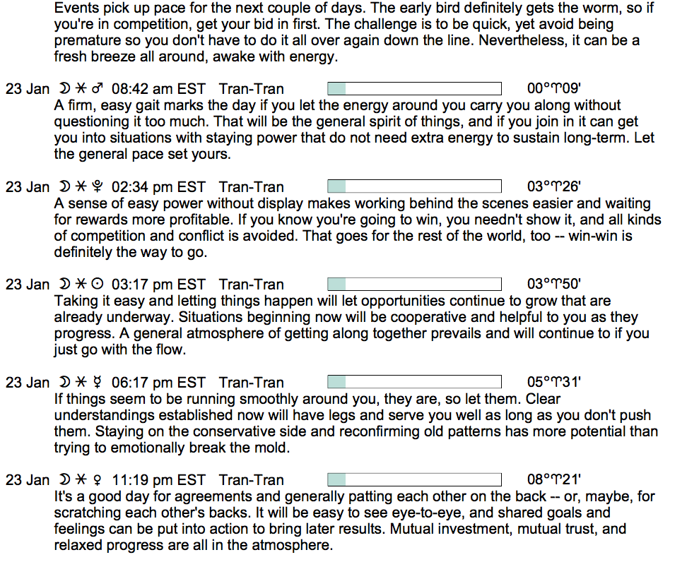 If you’re astrologically inclined and interested in the details of the Astrology of today, here are some of the factors considered in the forecasts: