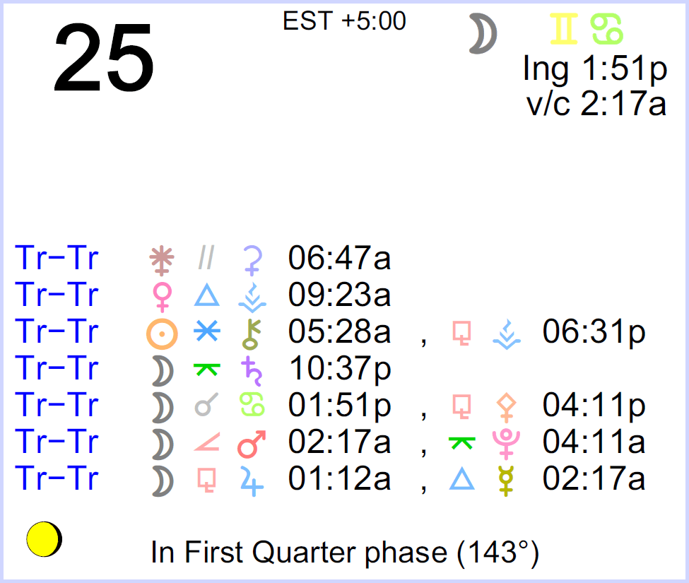- The void Moon occurs today from 2:17 AM to 1:51 PM.