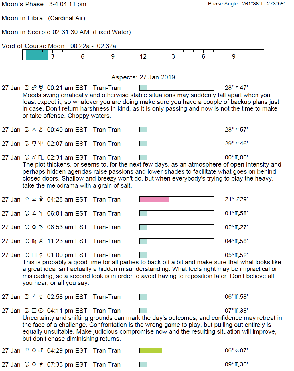 Planet Color Key: The longer the bar, the slower the aspecting planet and the longer the duration of the planet’s transit.