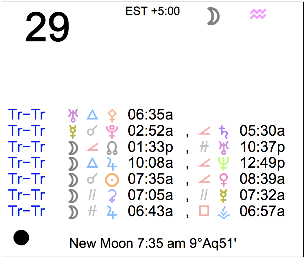 - The New Moon occurs today at 7:35 AM in Aquarius.