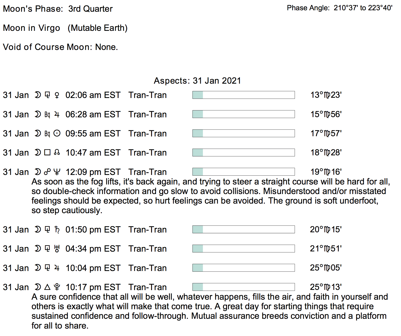 If you’re astrologically inclined and interested in the details of the Astrology of today, here are some of the factors considered in the forecasts: