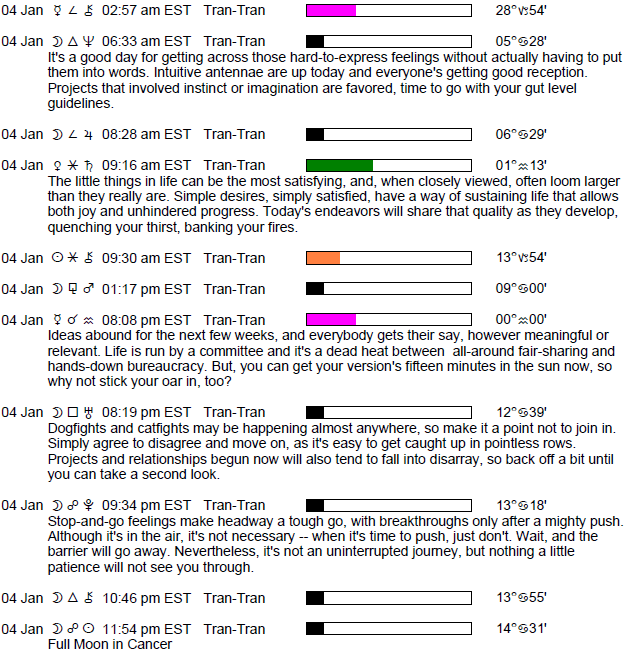 - The Moon is in Cancer all day (until Tuesday, January 6th at 6:02 AM EST).