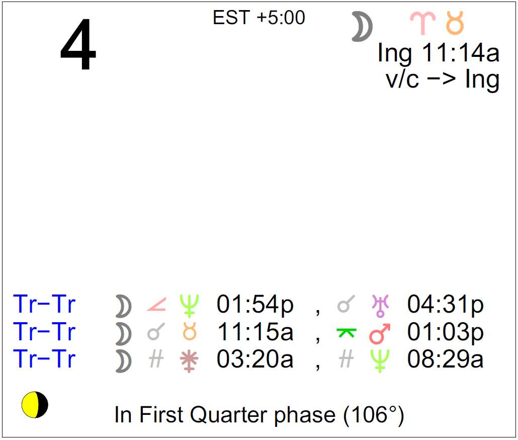 - The void Moon continues until 11:14 AM (since yesterday at 8:18 PM).