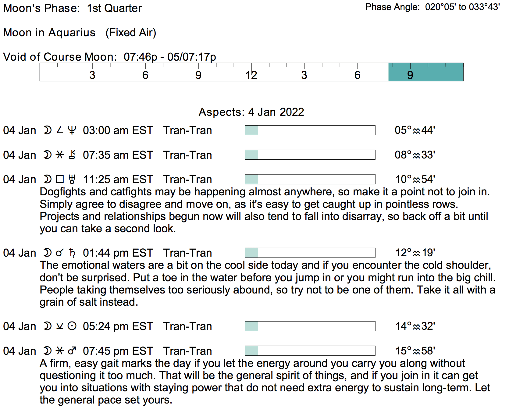 - A void Moon starts at 7:44 PM today (and runs until tomorrow at 7:16 PM).