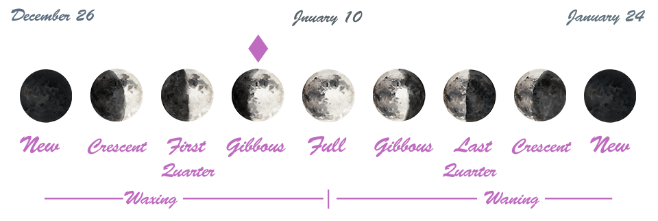 - The First Quarter Moon occurred on the 2nd, and the Full Moon/Lunar Eclipse will happen on January 10th.