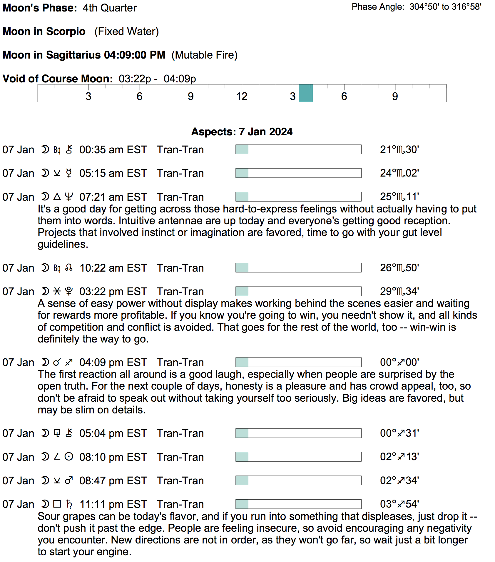 - A void Moon period occurs from 3:21 PM to 4:08 PM today.