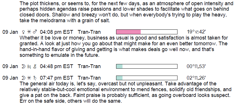 If you’re astrologically inclined and interested in the details of the Astrology of today, here are some of the factors considered in the forecasts: