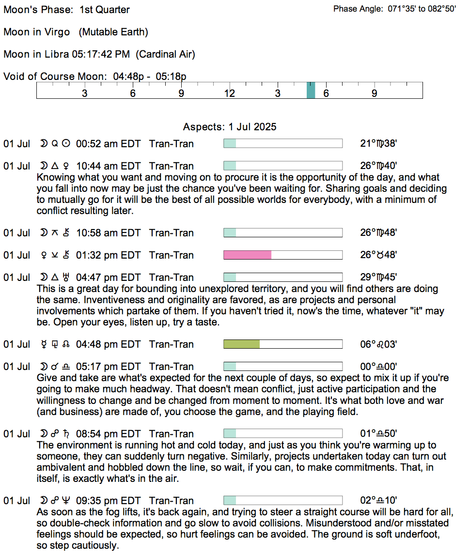 If you’re astrologically inclined and interested in the details of the Astrology of today, here are some of the factors considered in the forecasts: