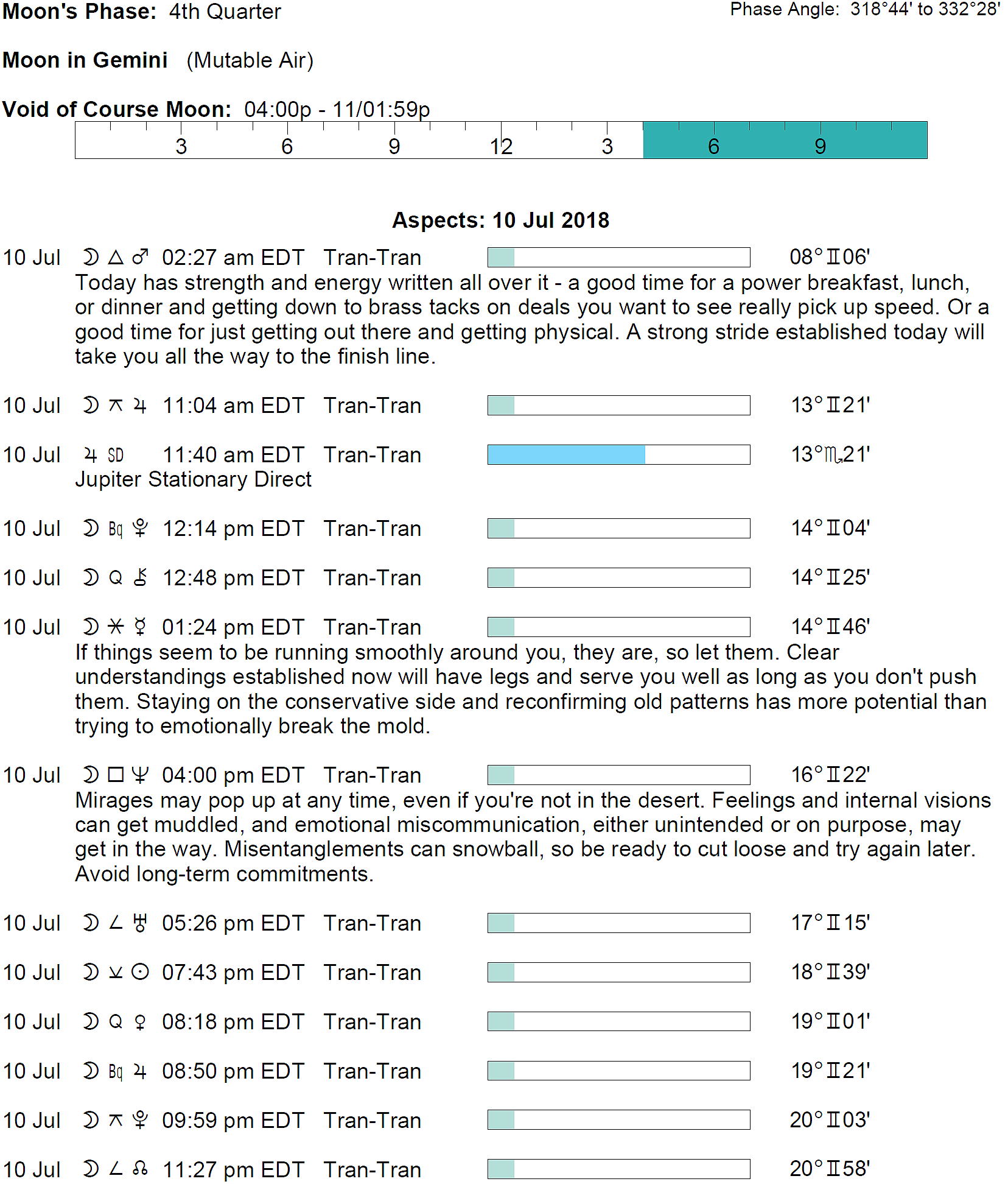 **Conjunctions to Select Fixed Stars on July 10, 2018.**