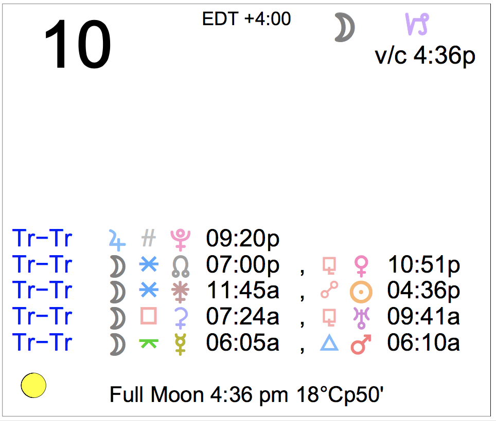 - The Full Moon occurs today in the sign of Capricorn at 4:36 PM.