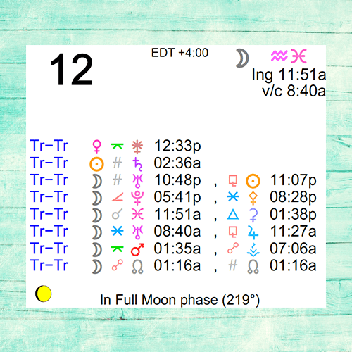 - The Moon is in Aquarius until 11:51 AM, after which the Moon is in Pisces.