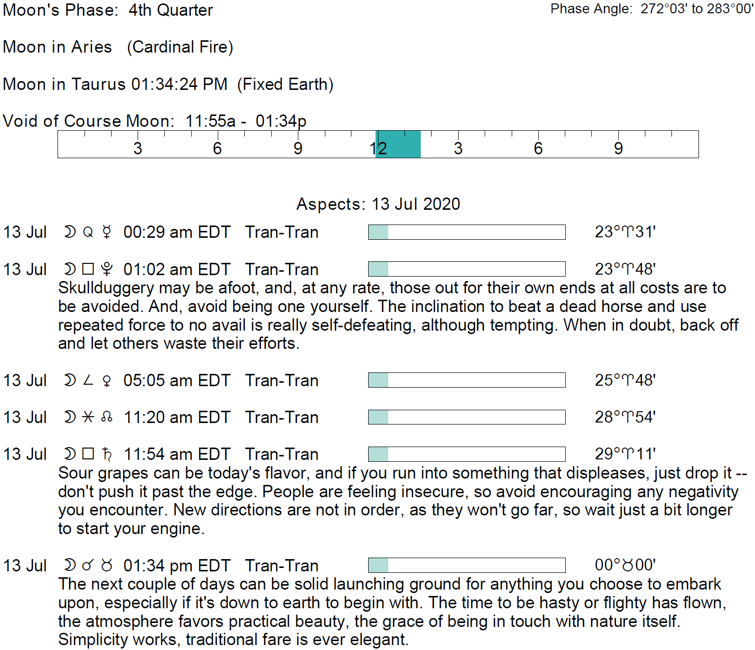 - The Last Quarter Moon occurred yesterday, and the New Moon will happen on the 20th in the sign of Cancer.