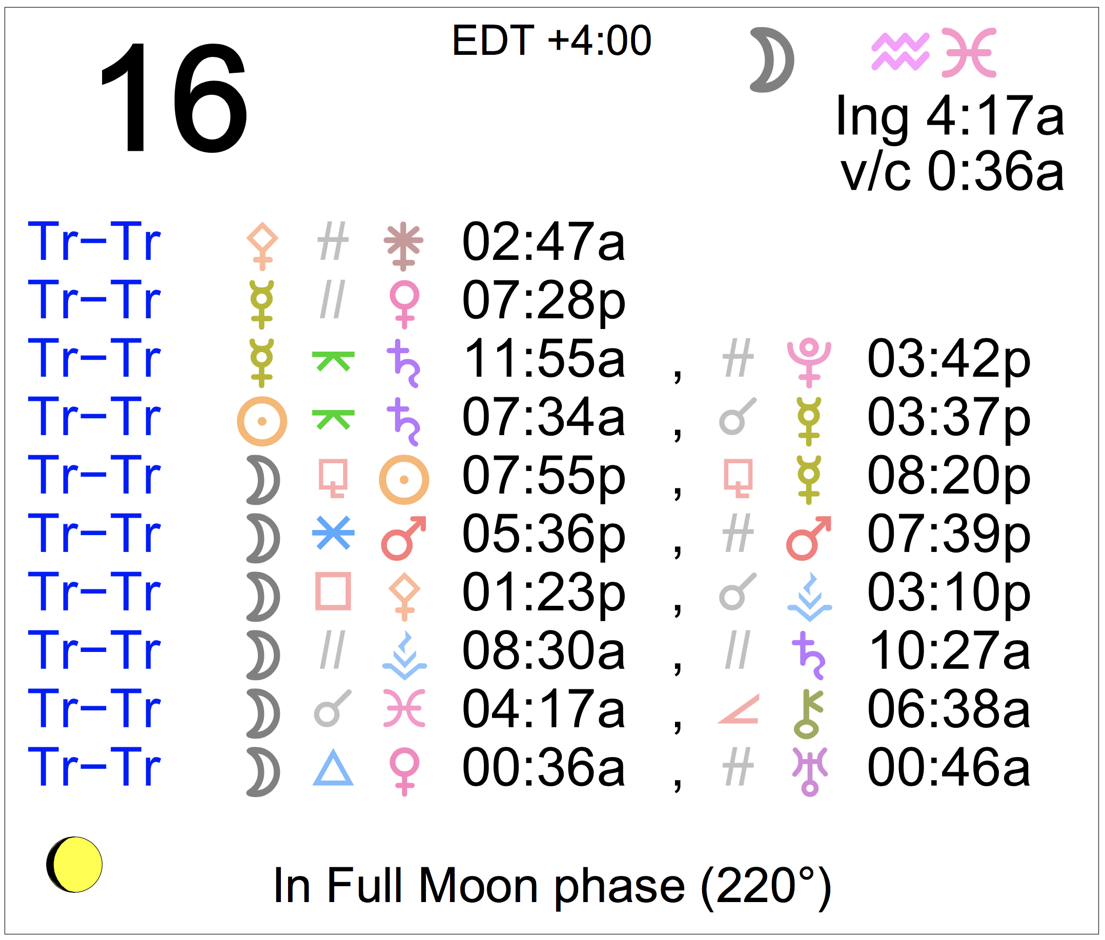 - A void Moon period occurs from 12:36 AM to 4:17 AM today.