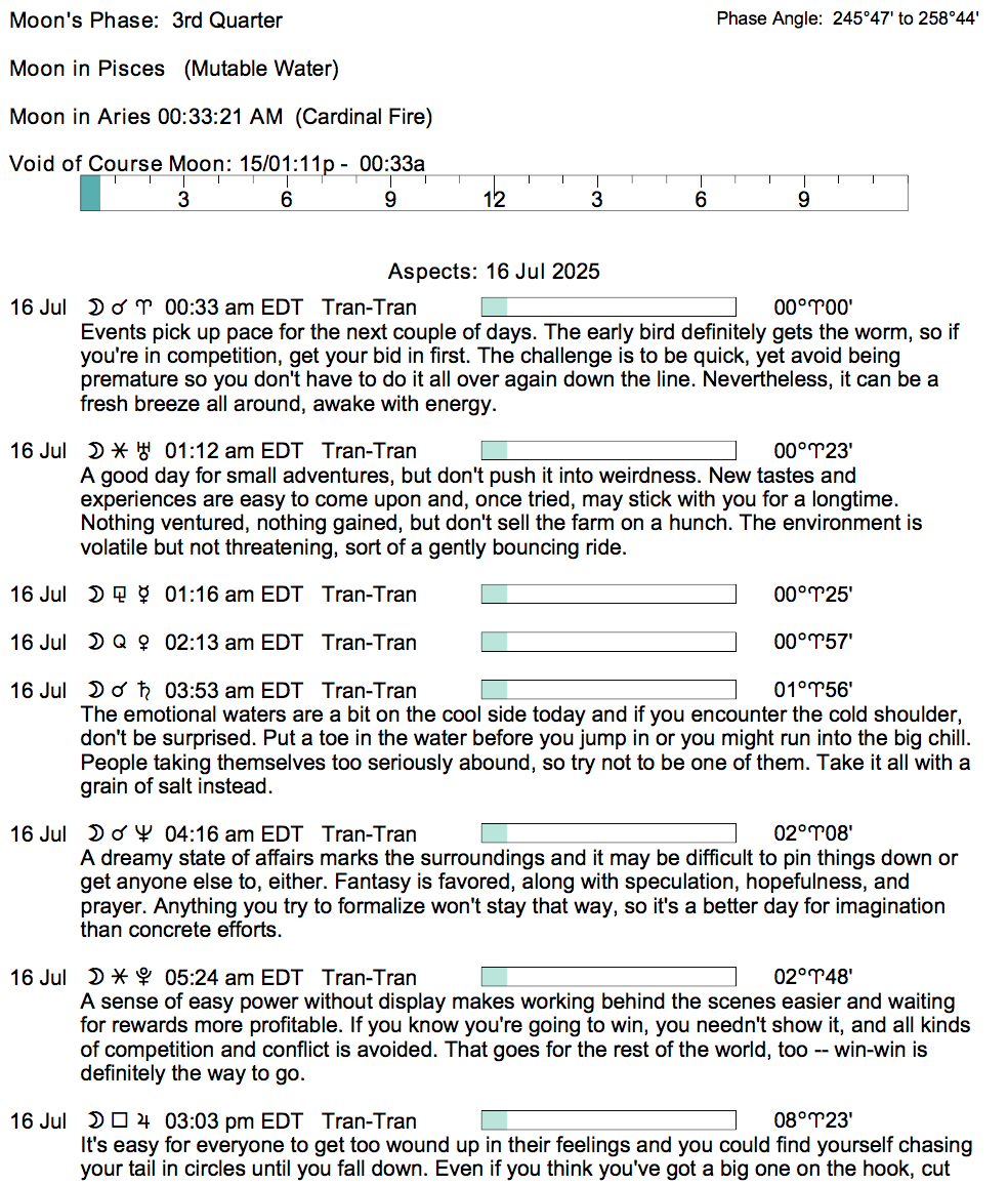 If you’re astrologically inclined and interested in the details of the Astrology of today, here are some of the factors considered in the forecasts: