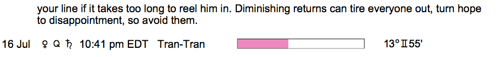 Planet Color Key: The longer the bar, the slower the aspecting planet, and the longer the duration of the planet’s transit.