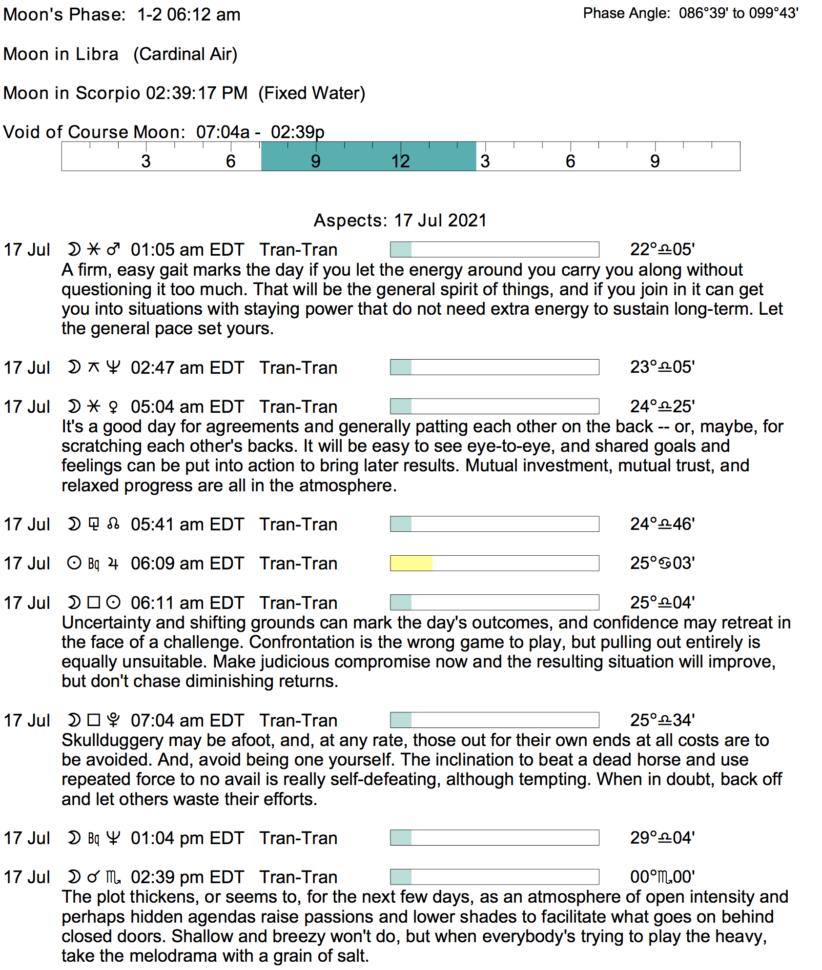 - A void Moon period occurs from 7:03 AM to 2:38 PM today.
