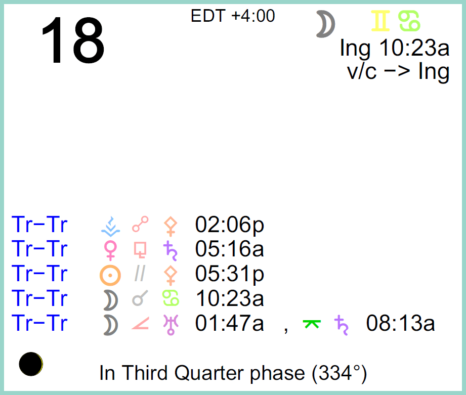 - We are in between the Last Quarter Moon that occurred on the 12th and the New Moon that will happen on the 20th in the sign of Cancer.