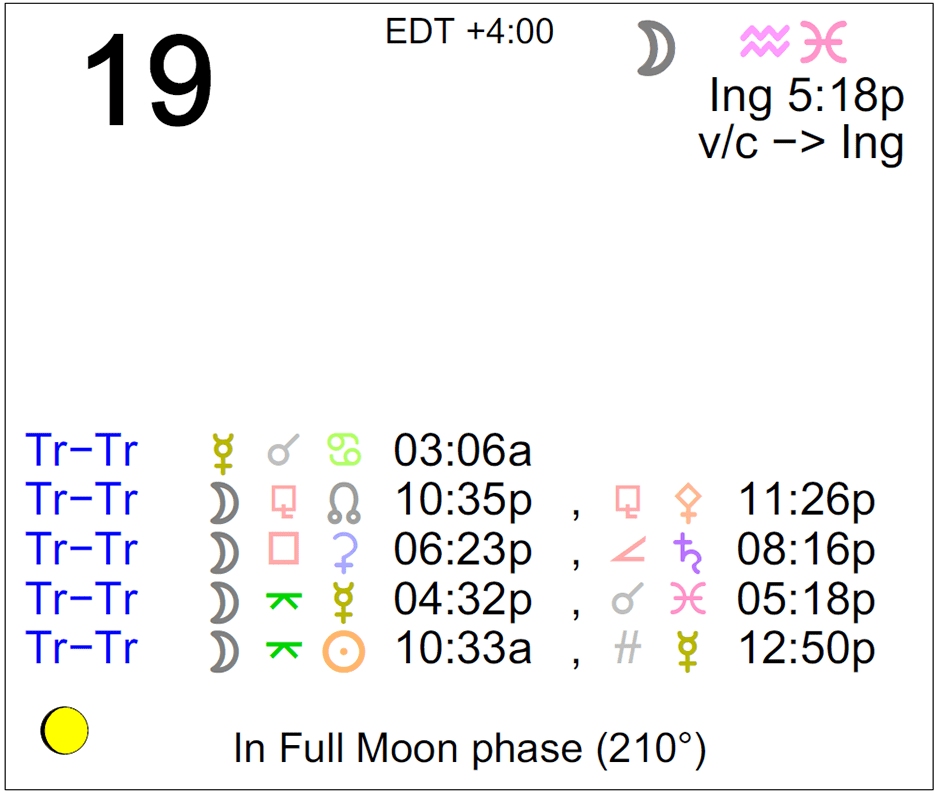 - The Moon is in Aquarius until 5:18 PM, after which the Moon is in Pisces.