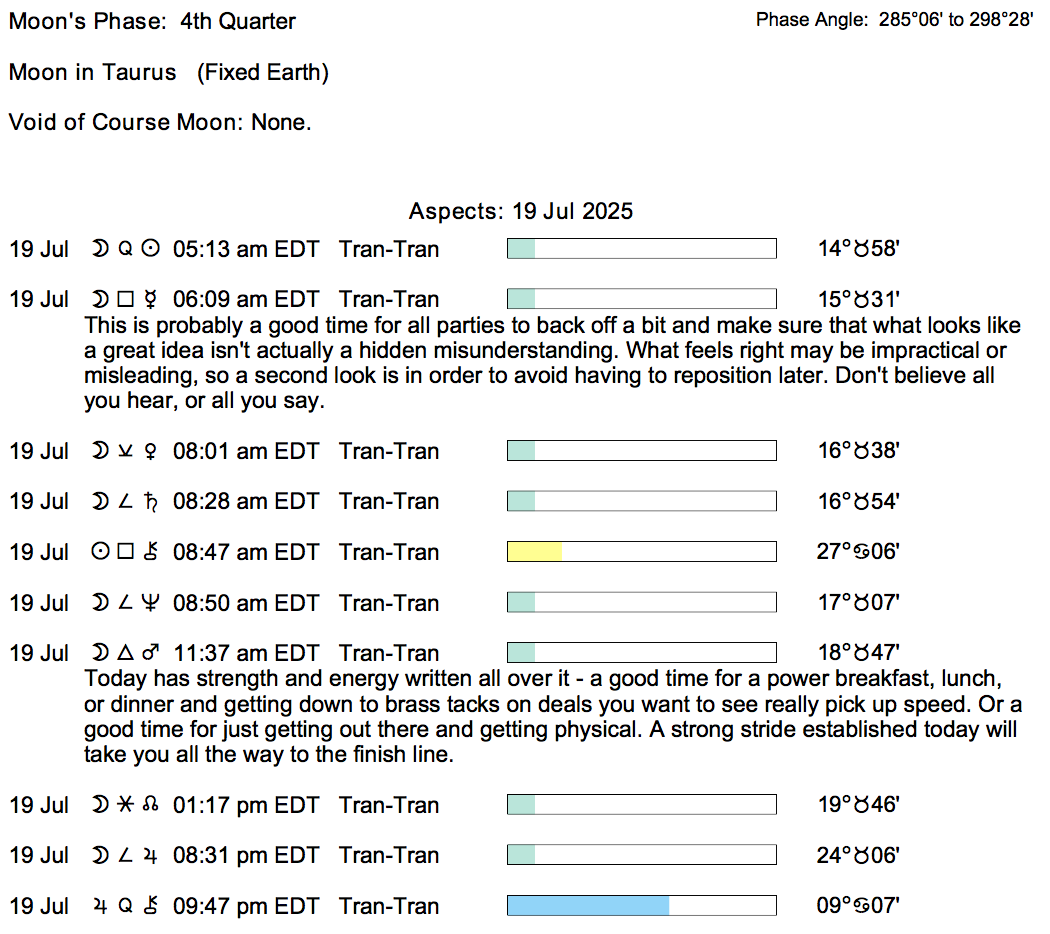 If you’re astrologically inclined and interested in the details of the Astrology of today, here are some of the factors considered in the forecasts: