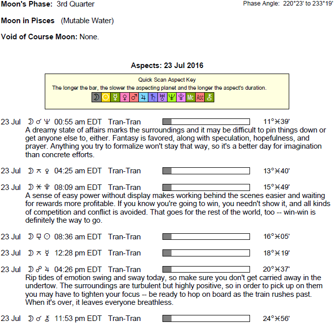 - The Moon is in Pisces all day (until Sunday, July 24th, at 8:32 AM).