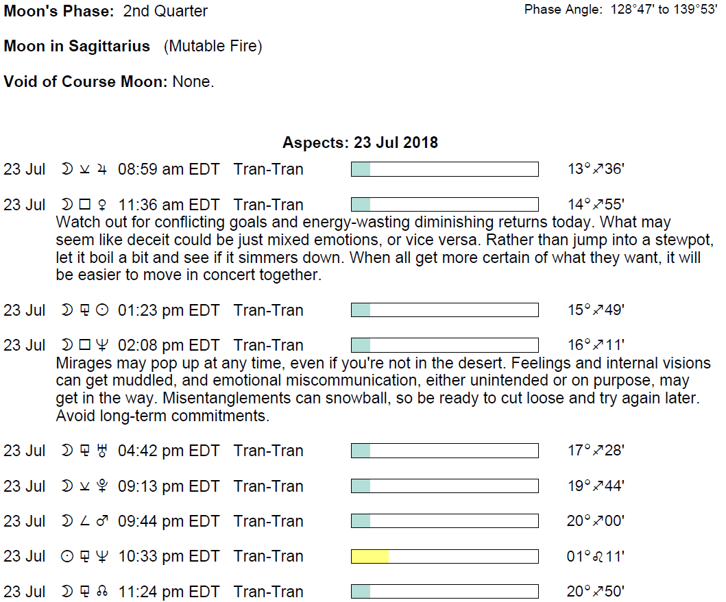 **Conjunctions to Select Fixed Stars on July 23, 2018.**