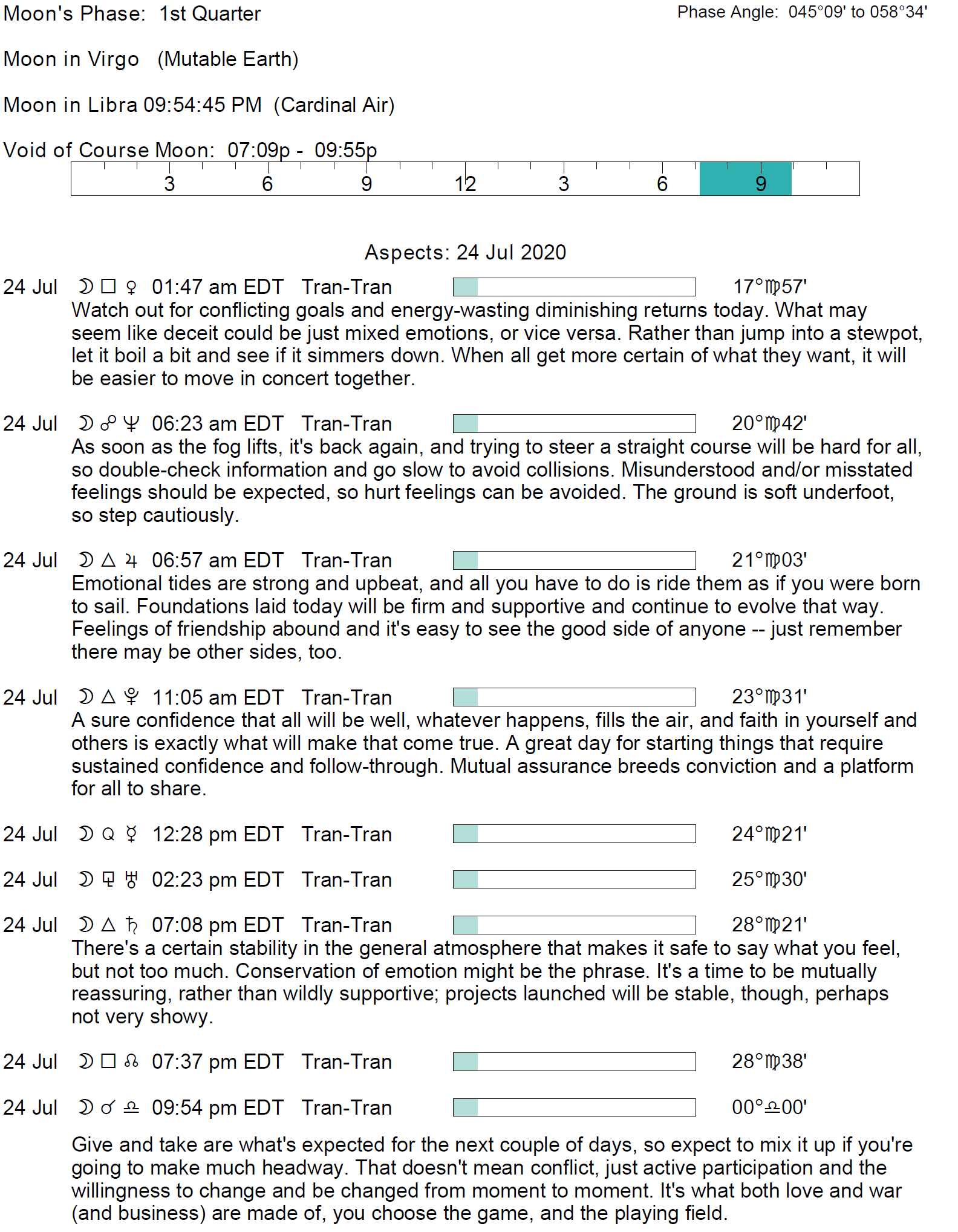 If you’re astrologically inclined and interested in the details of the Astrology of today, here are some of the factors considered in the forecasts: