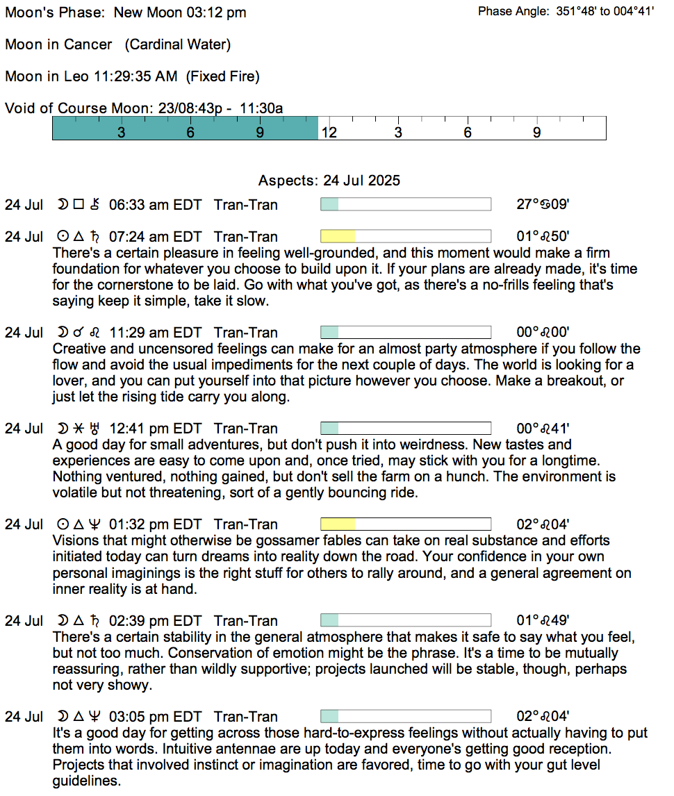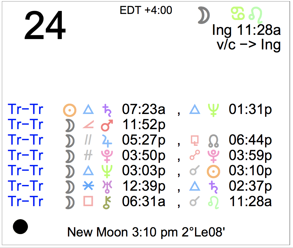 - The New Moon occurs today in the sign of Leo at 3:10 PM.