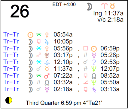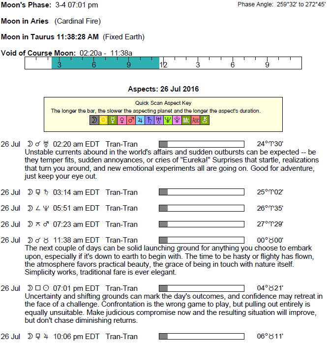 - The Moon is in Taurus from 11:37 AM forward (until Thursday, July 28th, at 2:16 PM).