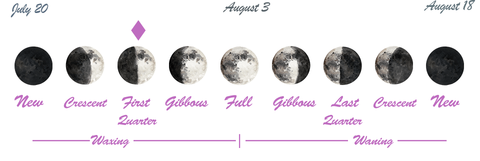 - The Moon is waxing and in its Waxing Crescent phase until 8:32 AM, after which the Moon is in its First Quarter phase.