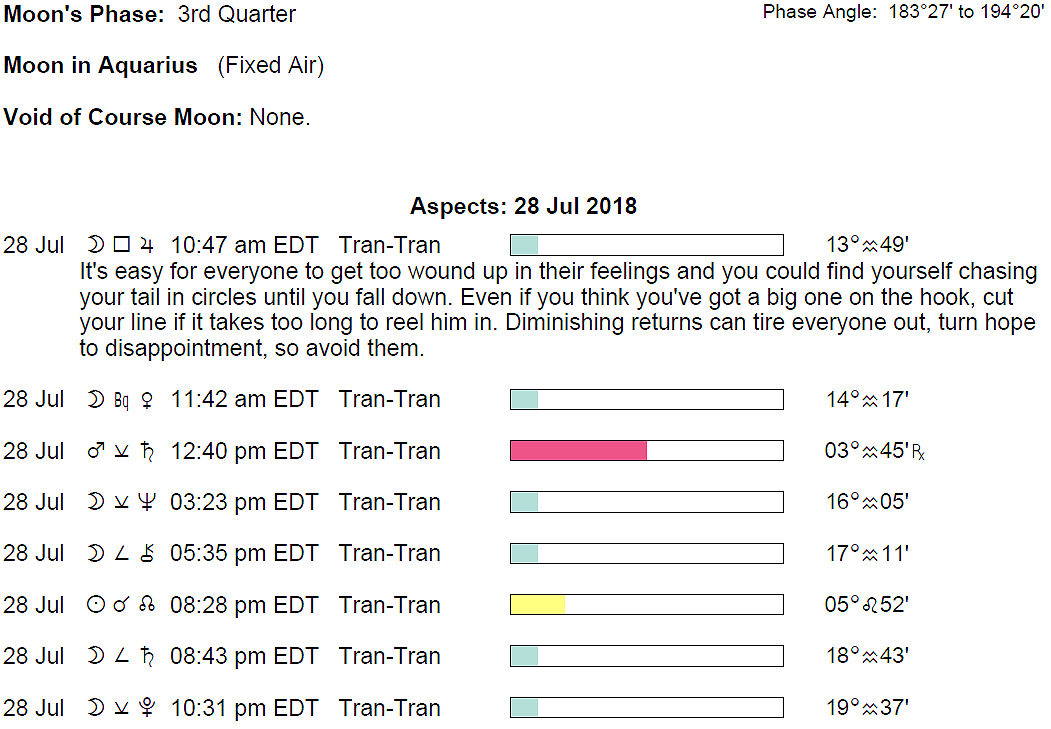 The following aspects (major only) and positions are at noon (EDT) on July 28th:
