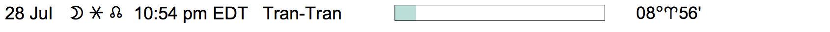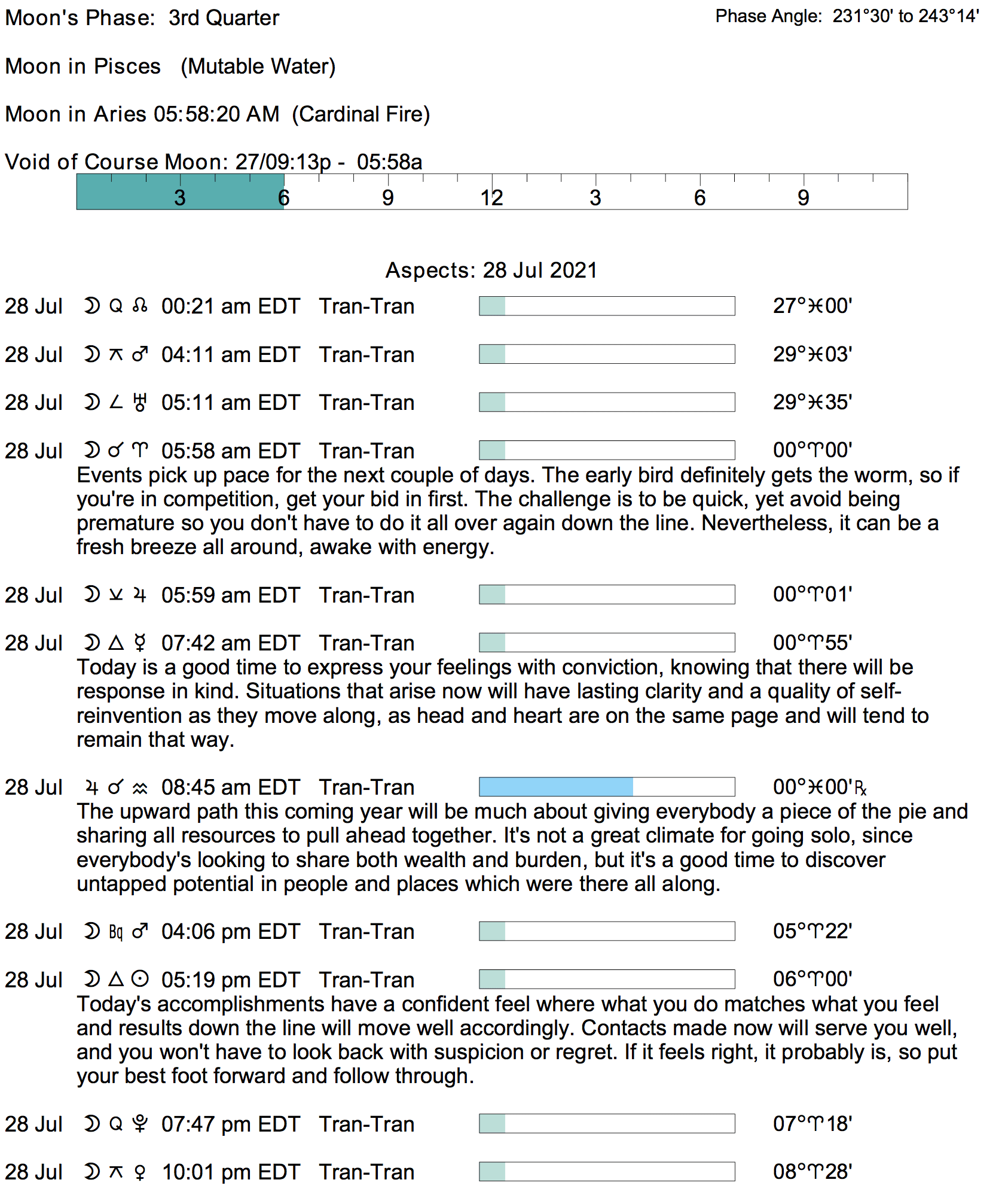 Planet Color Key: The longer the bar, the slower the aspecting planet, and the longer the duration of the planet’s transit.