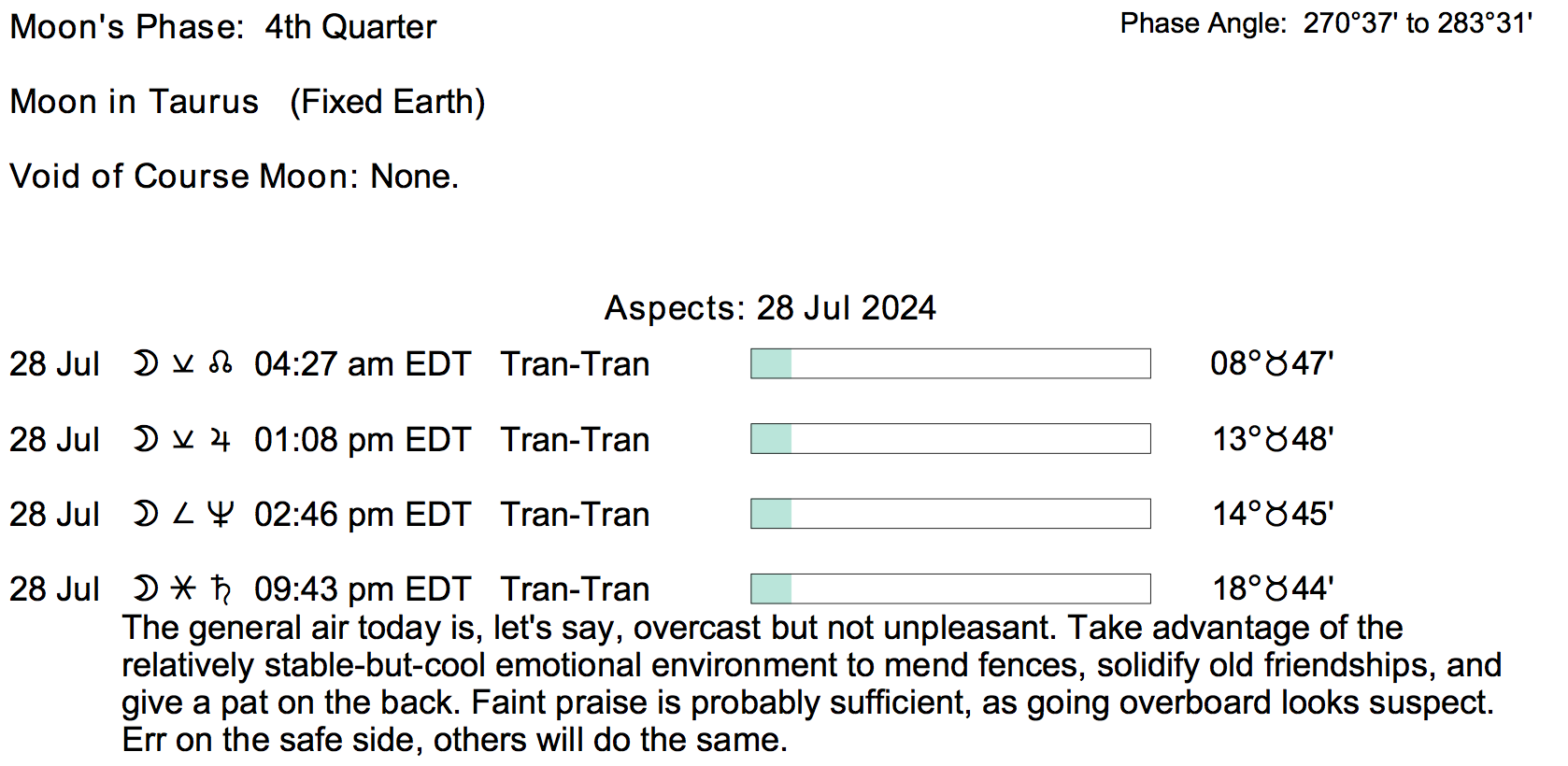 If you’re astrologically inclined and interested in the details of the Astrology of today, here are some of the factors considered in the forecasts: