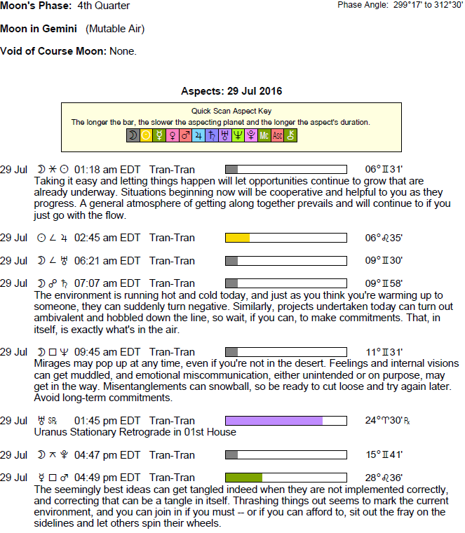 - The Moon is in Gemini all day (until Saturday, July 30th, at 5:08 PM).