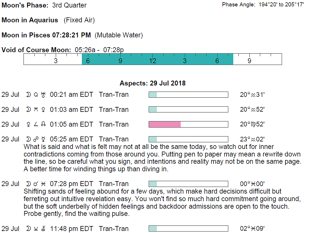 The following aspects (major only) and positions are at noon (EDT) on July 29th: