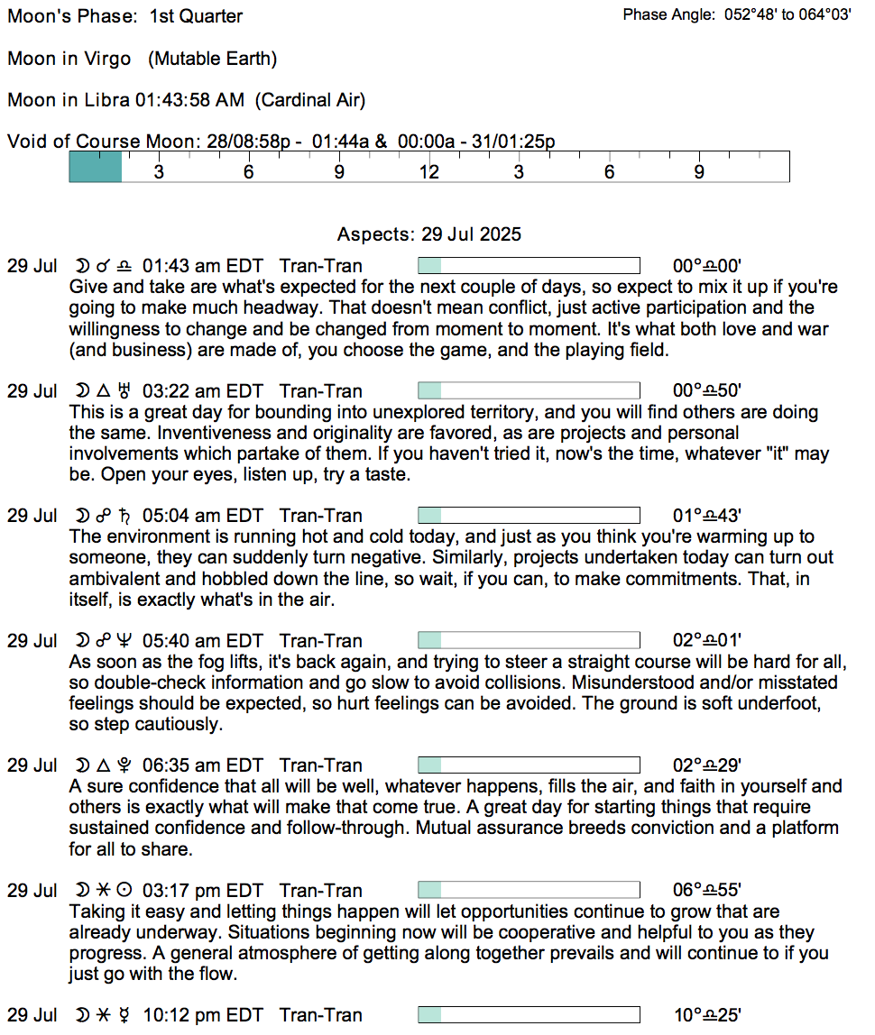 If you’re astrologically inclined and interested in the details of the Astrology of today, here are some of the factors considered in the forecasts: