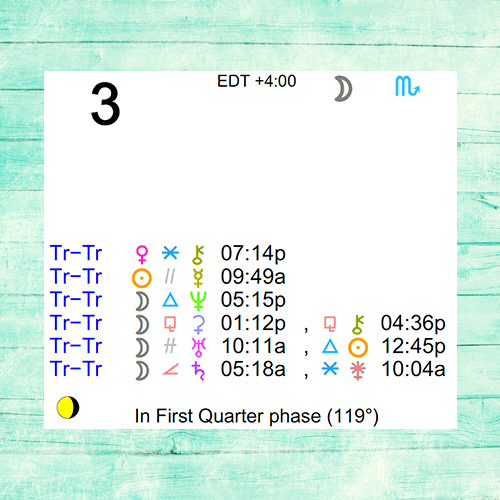 **I suggest paying close attention to applying aspects. The energy of the aspect builds as it gets closer to exact. Once an aspect involving inner planets has happened, it’s over. Separating aspects are good to know for context, but in terms of energy that is with us today, applying aspects are most important. (This is the case for daily astrology influences involving inner planets, which pass quickly, and not natal astrology aspects, which are with us for a lifetime).