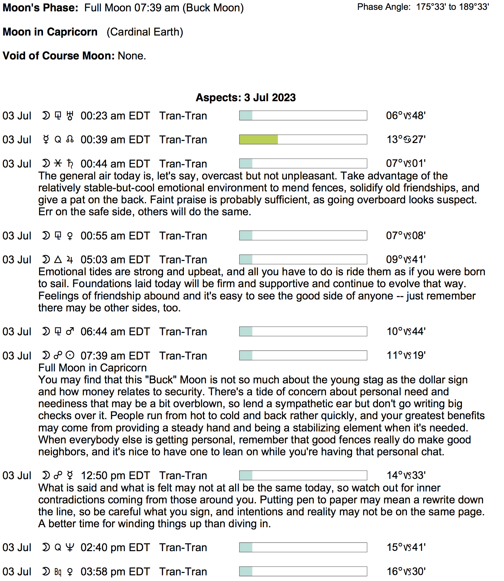 - The Full Moon occurs today at 7:38 AM in the sign of Capricorn.