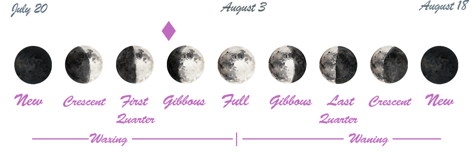- The First Quarter Moon occurred on the 27th, and the Full Moon will happen on August 3rd.
