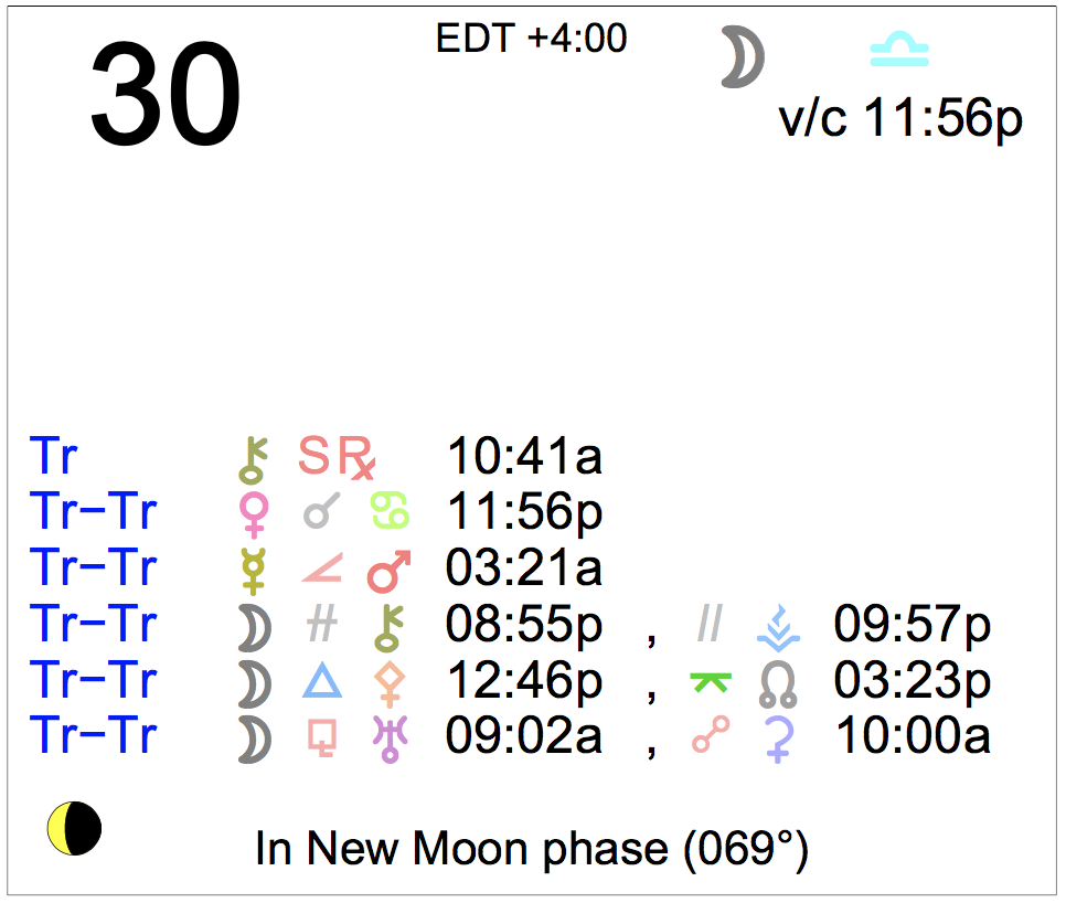 Planet Color Key: The longer the bar, the slower the aspecting planet, and the longer the duration of the planet’s transit.