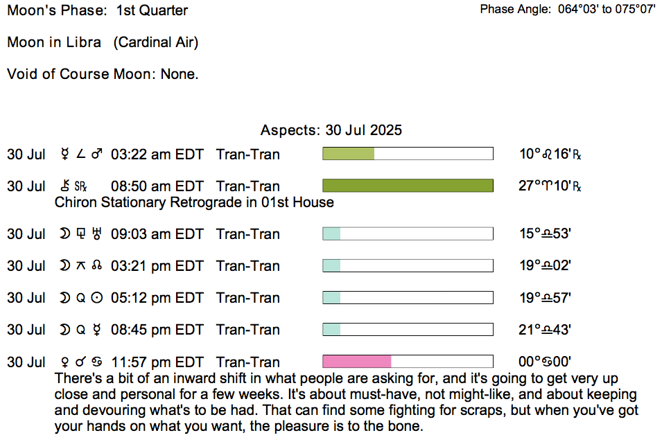 If you’re astrologically inclined and interested in the details of the Astrology of today, here are some of the factors considered in the forecasts:
