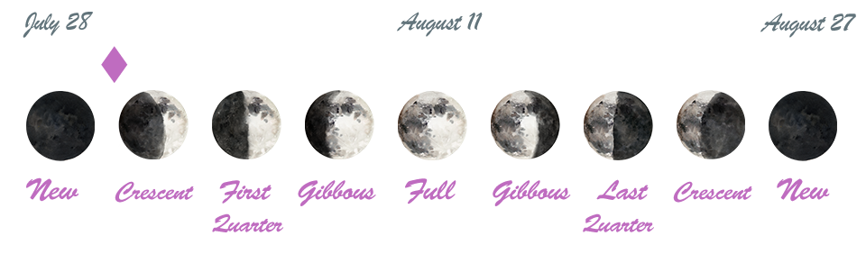 - The New Moon occurred on the 28th, and the First Quarter Moon will happen on August 5th.