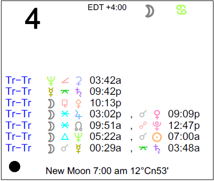 - A New Moon occurs today at 7:00 AM in Cancer.