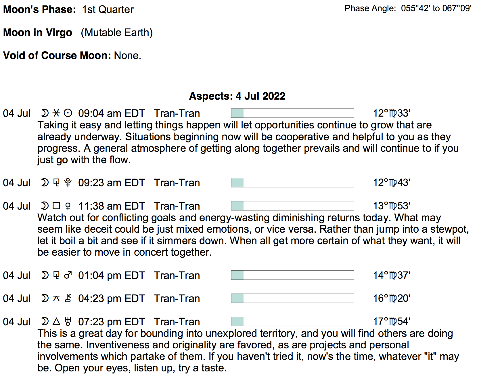 If you’re astrologically inclined and interested in the details of the Astrology of today, here are some of the factors considered in the forecasts: