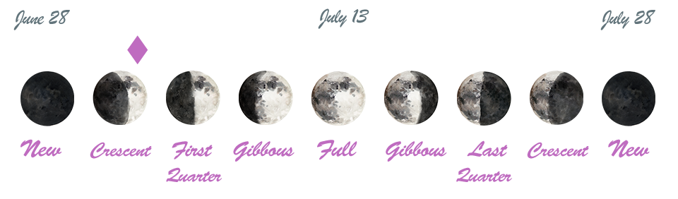 - The New Moon occurred on the 28th in the sign of Cancer, and the First Quarter Moon will happen on the 6th.