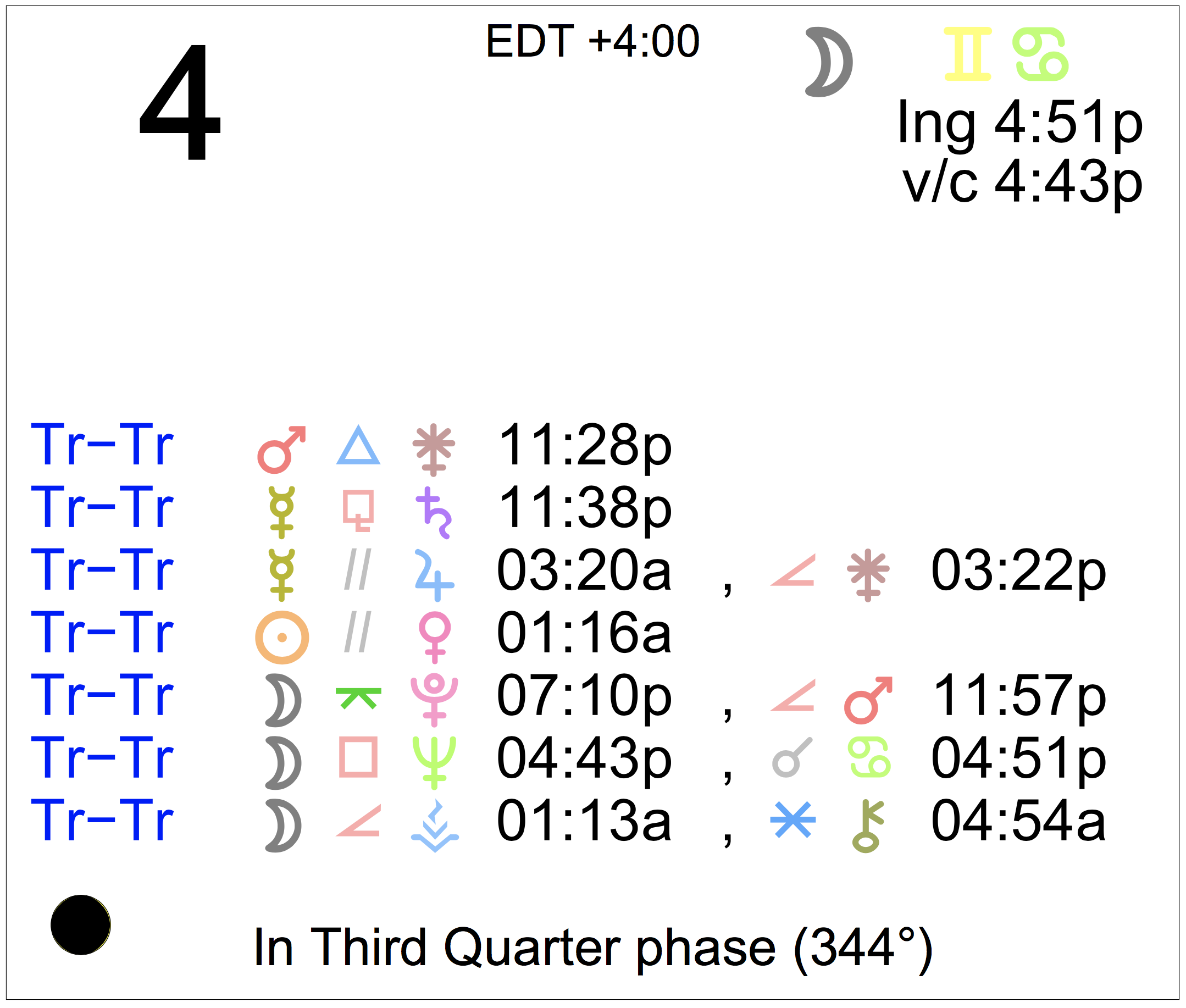 - A short void Moon period occurs from 4:43 PM to 4:51 PM today.