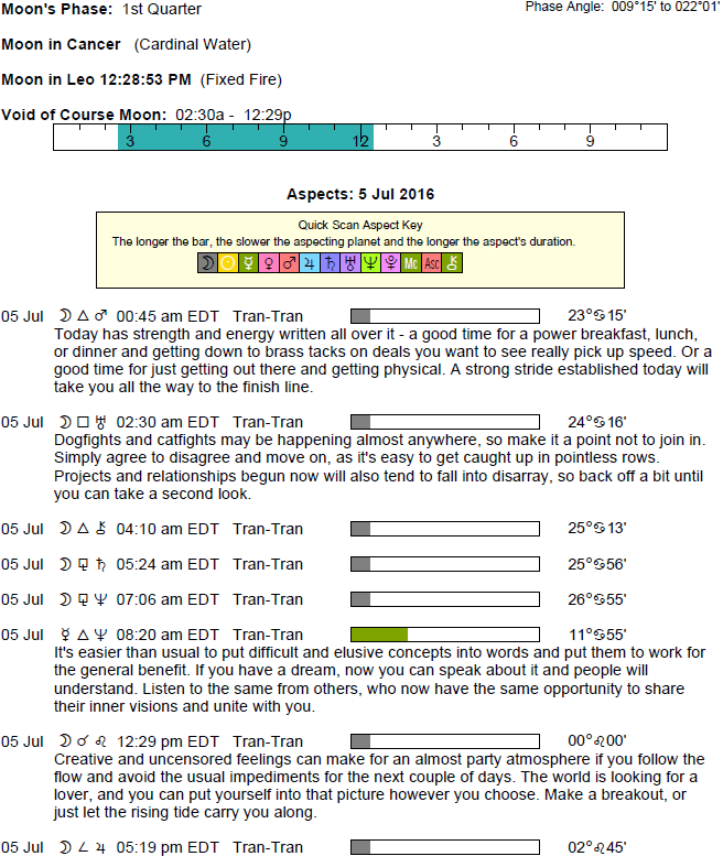 - The Moon is in Leo from 12:27 PM forward (until Thursday, July 7th, at 6:40 PM).