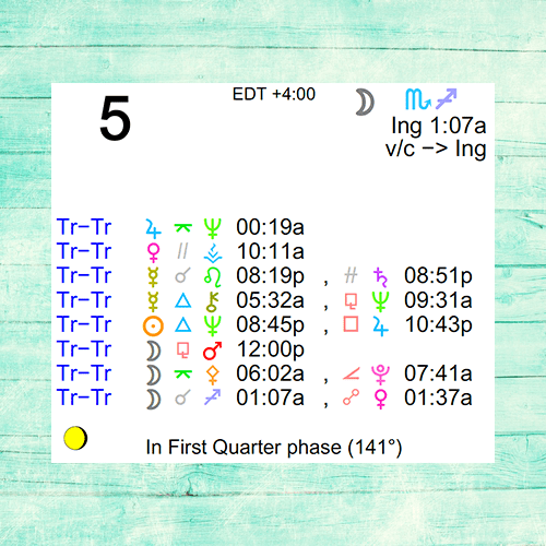 Description: Transiting Moon SesquiSquare Transiting Mars