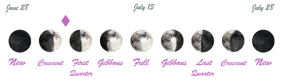 - The New Moon occurred on the 28th in the sign of Cancer, and the First Quarter Moon will occur tomorrow.