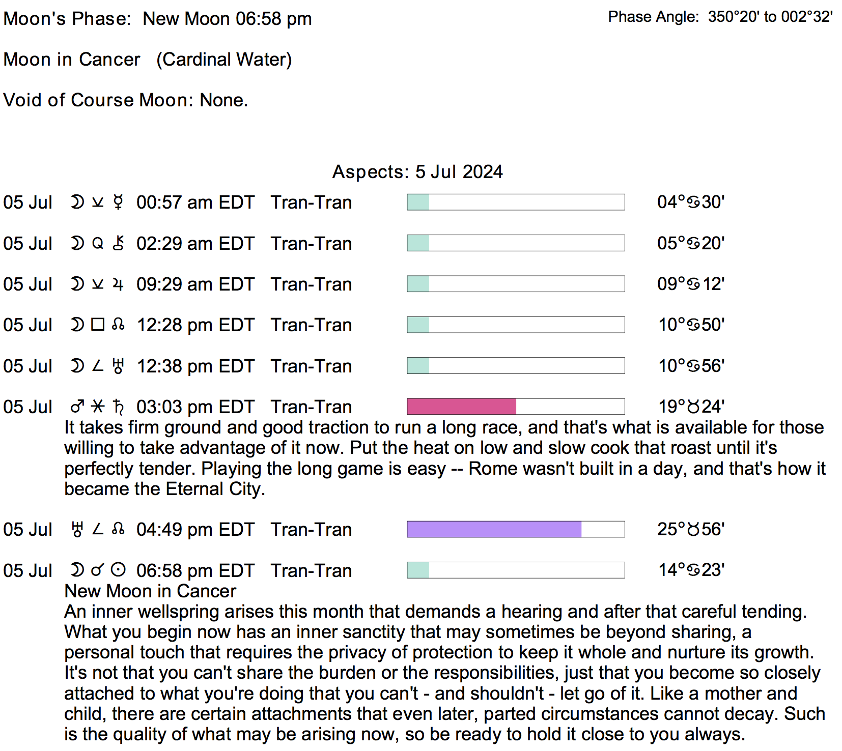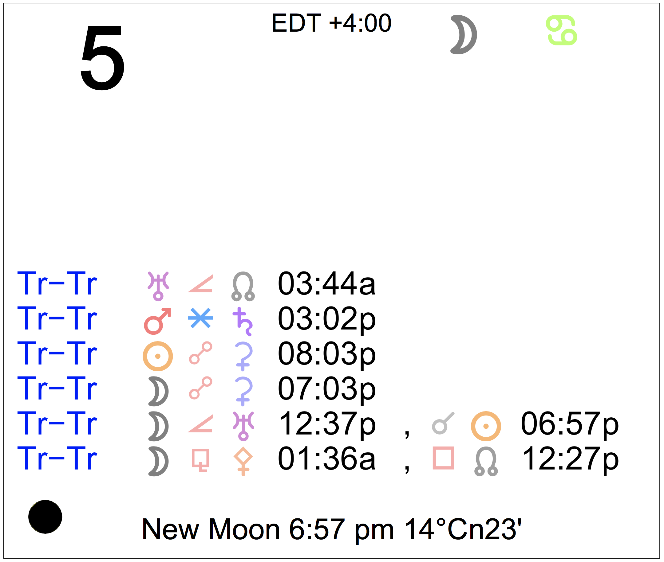 - The New Moon occurs today at 6:57 PM in Cancer.