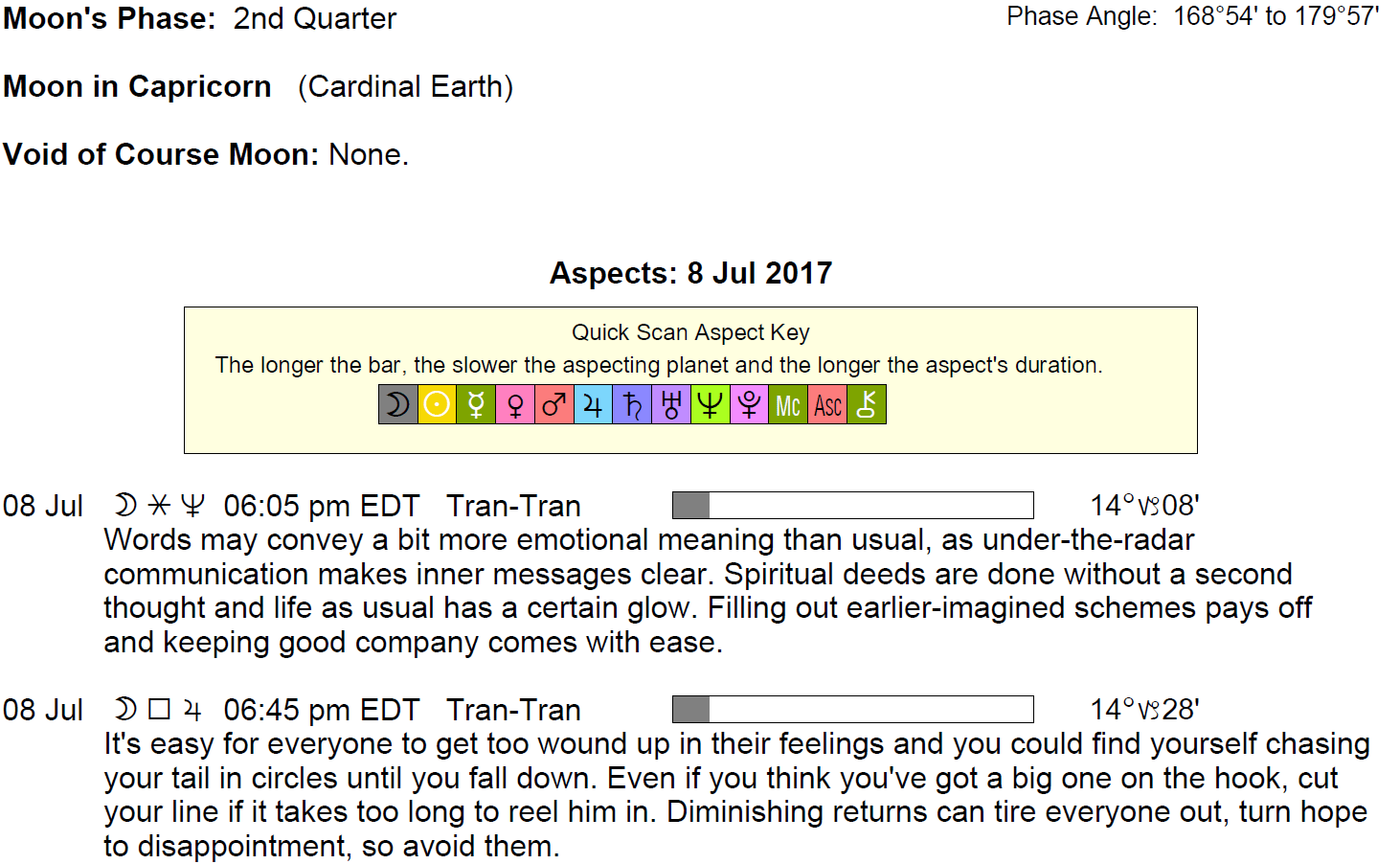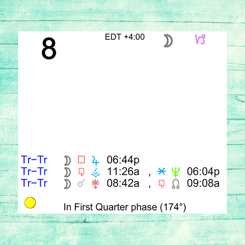 The following aspects (major only) and positions are at noon (EDT) on July 8th: